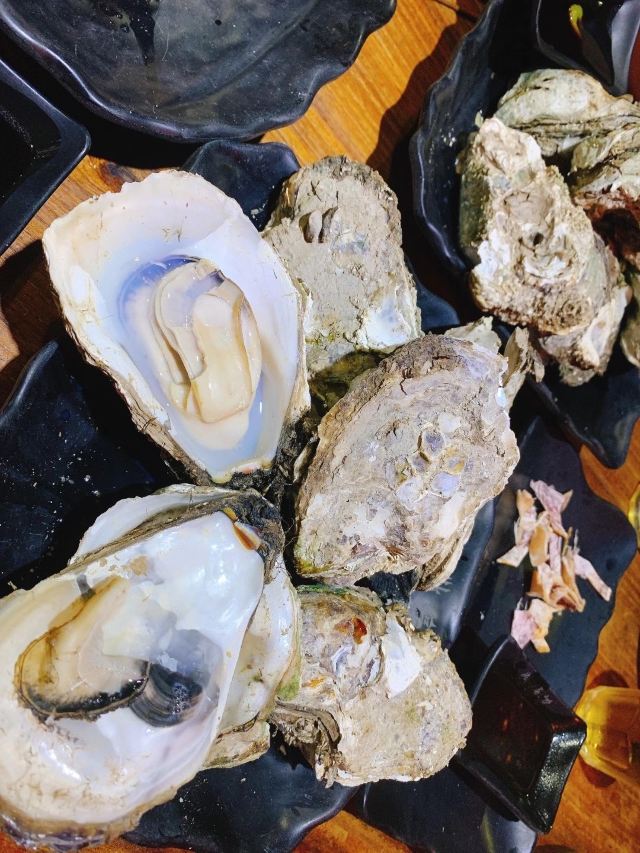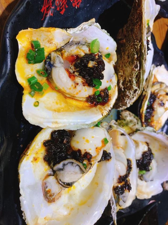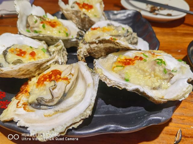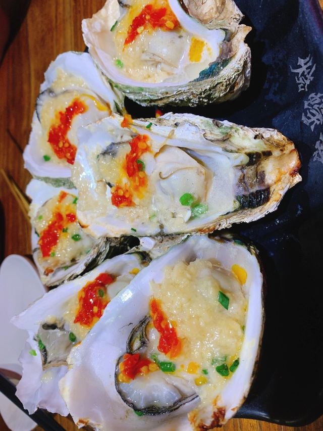 本帮蒜香烧蠔,湿辣牛肉,海味原只生蚝,本帮蒜香烧蚝,烧扇贝,冰镇酸梅汤,串烧海虾,海味原只生蠔(大),烧鸡软骨,锡纸金针菇,黑蒜烤生蚝,烧海虾,蒜香烧蚝,灵山鸡粥浸蠔,万那汁烧蚝,灵山鸡浸虾粥,金桔柠檬红茶豪炮,生蚝