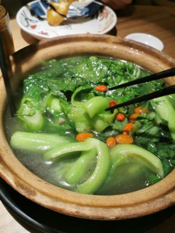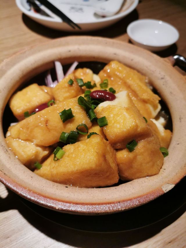 可乐鸡翅:都是鸡中翅,用砂煲来焖,很香,推荐 你没吃过我豆腐:豆腐很滑,外层很脆也很入味,推荐推荐 酒焗牛肉:牛肉切得很薄,也很嫩,容易入口。酒味不会很重,可以当汤喝,也可以用来拌饭。很喜欢,推荐哦 鸭汤芥菜煲:鸭汤本来很香,用来煮芥菜,当做一道青菜也可当一例汤