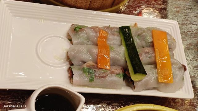 是一家广式茶楼,这里环境非常好,高档大气,菜品感觉很精致,寿司有很多品种,还有烤肉和许多熟食。