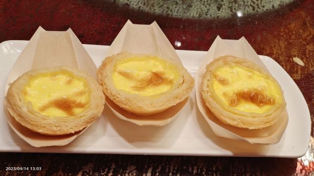蛋挞,核桃包,幸福梳乎厘,三文鱼,宁夏菜心,凤爪,脆皮雪山包,木桶骨,干锅王村豆腐,沙姜焗竹肠,牛仔骨,鲍片鸡丝粥,蜜汁黑叉烧,飘香榴莲酥,蜂巢糕,鲜奶包,烧卖,墨鱼饼,蒜香骨,腌羊肚,铁板蔬菜鸡蛋炒饭,田园沙律,虾皇饺,鲍汁扣凤爪,黑椒牛仔骨,梳芙哩,黑叉烧,葡挞