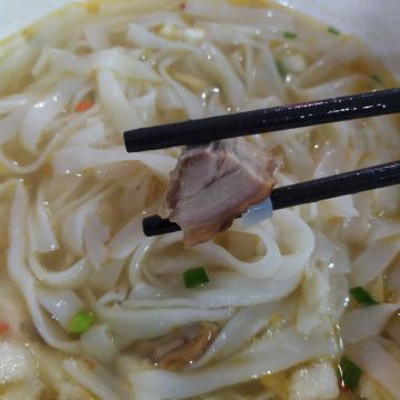 这家米粉店口味不错。他不同于桂林米粉。桂林米粉是干捞的,它是类似本地有汤的。汤也比较鲜。更有特色的是,他这里主打的是他的烧鸭,还有各种各样的卤味。基本上来这里的都是要烧鸭,味道很不错。