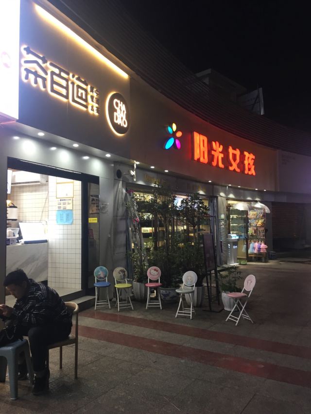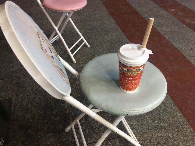 旅游度假茶百道最近几年还比较火,丰都宏声广场开了一家,没有堂食区,就门口摆放了几张凳子。奶茶的杯子挺好看的,买的大红袍奶茶,热气腾腾,甘甜回味,丝滑柔顺。
