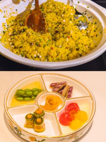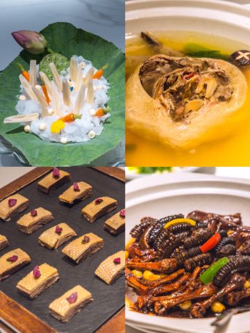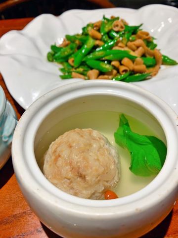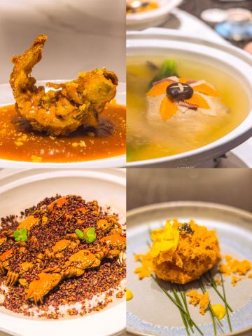 Ping Shan Yan宋时,欧阳修常携宾客于平山堂饮宴。文章太守,挥毫万字,一饮千钟,淮扬菜典雅俏丽的人文风格由此而起,经年不衰。 平山宴以此为灵感,取名平山宴,着实吸引了我。 作为淮扬菜非遗传承基地,平山宴创新不辍,四季宴更是充满了文人味道。 惟有绿荷红菡萏,卷舒开合任天真。真是幸得此生多遇扬州,才没错过平山宴的这一顿夏宴。 时至六月,不时不食的扬州人又将给淮扬菜带来怎样的创新呢? 一盘精致的冰镇莲藕、莲子、莲蓬拉开了此次夏宴的篇章。恰逢梅雨季节的扬州,白天稍些湿热,但傍晚后的瘦西湖晚风轻轻拂来,眼前的这道前菜堪称“冰镇荷香”,令人赏心悦目的同时还感到阵阵舒爽。 前菜十分丰富,像洋花萝卜海蜇头、双黄灯影鱼片、红油蒜泥猪头肉、风生水起三文鱼捞冰脆鸡、橄榄茭白辣木苗等光从摆盘、造型上来看,就像是一幅幅精致的画。 前菜如此精致,不敢想象主菜将会如何拿捏我的视觉与味觉。 淮扬三套鸭、三虾嘶马拉豆腐、醋溜东海大黄鱼、红油蒜泥猪头肉、蜂窝鱼子酱西施乳、大红袍脆皮肥肠、虾籽清炖狮子头等,每一道菜都令人忍不住大快朵颐。 还有被花椒粒包围的六月黄(螃蟹),这道菜有点川味的感觉,大红袍脆皮肥肠亦是如此。此菜一入桌,很快就被朋友们吃光了。我除了馋三虾嘶马拉豆腐,对蜂窝鱼子酱西施乳也是颇为喜欢的。 此时,饮一杯酒,再吟一首诗,眼前佳肴如此风流,我仿佛融入了欧阳修的宴席中。