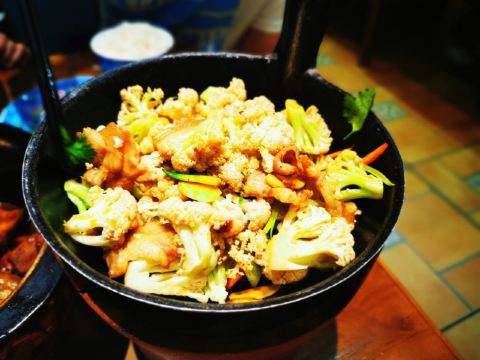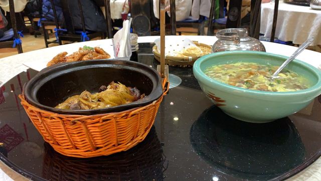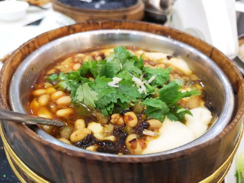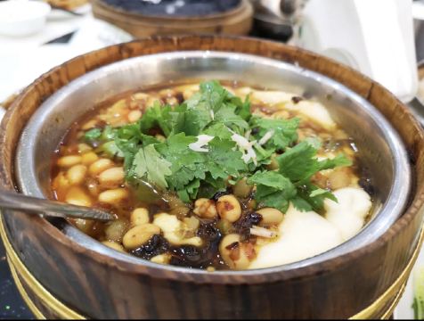 青鸟在身边这家网评真的太好了,所以很多慕名而来的游客。不知是否五一假期的原因没有所谓的本地人光顾,当然吸引大家的还是味道嘛!这次评价主要集中在味道上,也会稍带一些环境和服务,看完之后大家再决定是否要去体验这样的网红餐馆。 【口味】点了两道特色菜,老西门第一鸡和木桶豆腐。先来说说这道号称来的晚就吃不到的“第一鸡”。首先鸡肉还是比较嫩的,除此之外没有特别的味道。单吃肉没有什么味道,需要沾下面的汤汁,但是汤汁味道特别咸。说是整鸡,但实际只吃到一条腿,大家自己体会。下面配有猪手,已经粘在锅底,因为鸡肉沾汤汁已经太咸,所以底部的猪手没有尝试。然后是木桶豆腐,就是一桶豆花,吃完超咸的第一鸡觉得这个豆花味道还可以接收。但是看到这桶都花需要78元时,觉得它的味道也很一般。另外点了一荤一素,味道都偏咸 【环境】餐厅环境装饰花了一番心思还不错,但是用餐环境真的不太好。就餐人数特别多,桌与桌之间几乎没有空档,因而环境嘈杂。菜很咸,周围很吵,四点半开始等位1小时,吃饭20分钟,匆匆吃了一点就离开了。 【服务】四点钟已经有一些慕名而来的客人在门口等位,我们问前台服务员是否需要取号,告知不需要,来了直接吃。但是四点半再来的时候已经没有位置了,等位画了一个小时左右,中间有喊我们先去点餐,安排座位之后可以直接下单。点餐时没有菜单也不会告知菜品价格,价格大家可以点餐的时候自己问一下。因为号称一晚上需要翻台5/6次,因而菜品都是提前烧好的,所以上菜速度也很快,但是味道自己体会。 总之此次进一步肯定了我的想法,网红餐厅慎选