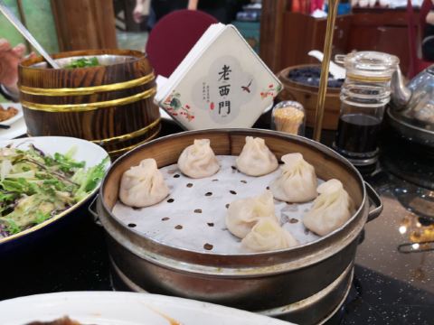 LAOXIMEN交通 位于常州晋陵北路398号(长兴楼饭店旁) 刚到常州的时候,接机司机就推荐了这家餐厅,说是本地人也常去吃的餐厅。 环境 到常州的第一天晚上7点多就已经不再接待拿号了,因为人已经满了,第二天下午5点多过去的,已经在排队了。 餐厅装修风格是中式的,木制的桌椅屏风,雕刻着花纹图案,绿色的窗纱,细节处都做的不错,环境很美,因为人多,店里环境略显嘈杂。 菜品 |老西门第一鸡^ 量还可以一整只鸡,口感比较软烂,淡淡的酱香味道,还是比较推荐的。 |炝虾^ 常州有名菜品,第一次尝试,原来是活虾,上桌时还活蹦乱跳的,量不小,腌过之后虾肉很鲜美,推荐场试一下。 |青果巷虾饼^ 听说来常州一定要尝尝虾饼,原来就是蔬菜和虾肉还有面糊一起过油炸,喜欢油炸食品的可以尝尝,略微有点油。 |老爸红烧肉^ 太甜了,真的太甜了,一口就够了,而且不全是方块五花肉,有很多大块的,不知道哪个位置的肉,不是很推荐。 |干锅有机花菜^ 这个倒是很意外,很好吃哈,免辣了,推荐推荐! 价格 两大一小花了两百多,价位中等偏上。 服务 整体来说服务水平还不错,服务员热情,礼貌,服务细致周到,但就是人多啊。