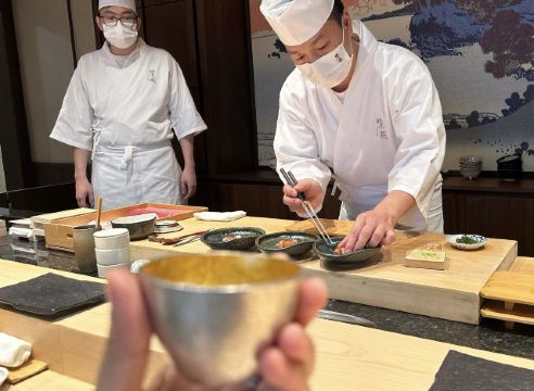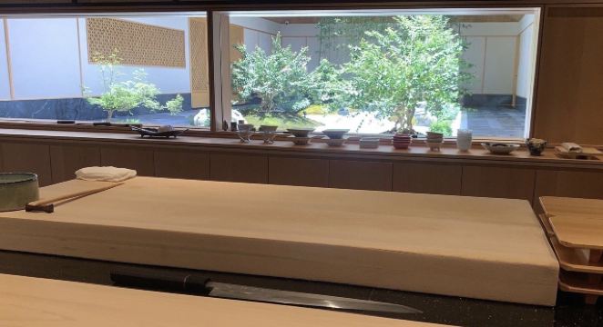餐厅位于王府广场,室外枯山水庭院美景沁人心脾,室内和风满满,淡雅又别有风情。餐厅主打日式Omakase,风格鲜明,食材由日本空运,来自香港的师父,会耐心的讲解每一道菜品,烹饪手法独特且具有新意。