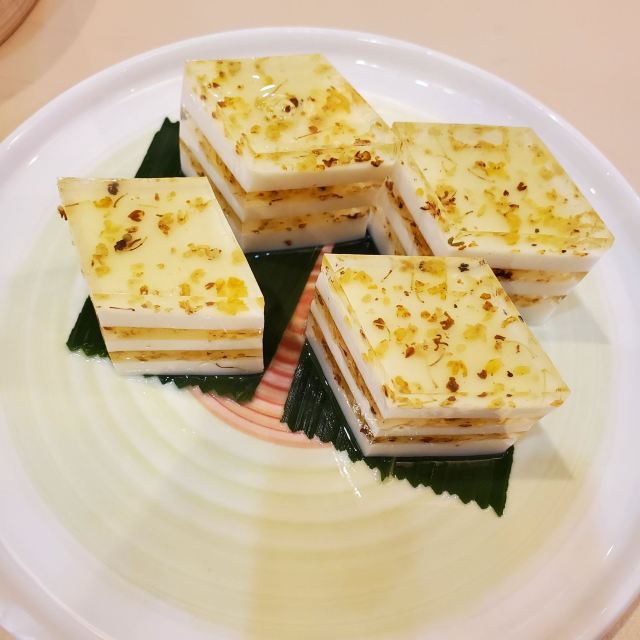 花椒油淋鲩鱼,头抽碌鸡,咸柠檬炒饭,虾饺皇,榴莲出奇蛋,腐乳酱焗虾,凉瓜刺身,韭菜煎鱼饼,红米脆皮肠,葱油酥淋鸡,酸菜煮鲩鱼,芥香沙律挞,煎焗肠头,红烧乳鸽,虾饺,鱼饼