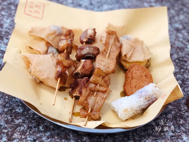 这是此次寻味顺德的最后一站,顺德吃吃吃之旅到此就圆满结束了。 炸串自选,人气很旺,本地人外地人都有。 每样点了一点尝尝味道,「炸云吞」、「排骨」、「龙眼炸猪肉」、「炸茄子」、「淮山酥」、「脆骨」。 最爱的是「炸云吞」,现包的薄皮小云吞,皮酥脆的不得了,一口一只太喜欢了。 「炸茄子」 就像是北方的炸茄子盒,中间塞了肉馅,吃起来更饱满。 「龙眼炸猪肉」 炸猪肉也不错吃,其实就是炸里脊了,但是还是不明白龙眼是啥意思? 「淮山酥」 全场最平淡的就是它了。 喜欢吃炸串的可以来哦。