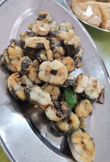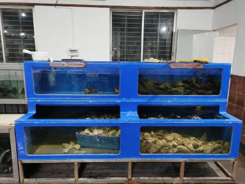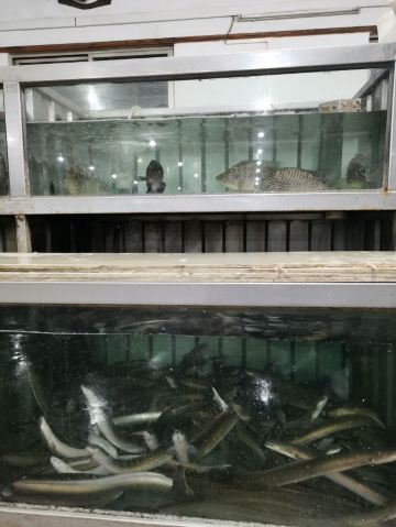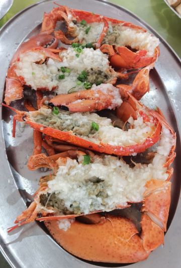 马拉糕,香煎金钱鳝,吊炉烧鹅,虾饼,蒜蓉开边蒸龙虾,鼓椒炒圣子,番薯排骨,海虾,白饭鱼煎蛋,炸云吞,烧鹅,河虾,豉油皇鹅肠,笋壳鱼,杂菇炒牛肉