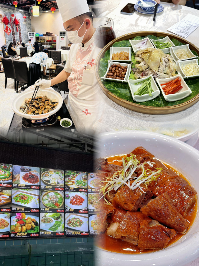 招牌烧鹅,椒盐鱼骨,风生水起鱼生,无骨鲫鱼,招牌捞起手撕鸡,双皮奶,鱼饼,鲍汁黑豆腐,炒饭,水果拼盘,双芥蒸越南土鱿,四基头菜剁猪肉,海鳝两食,私房炒海鲜双宝,顺风佛跳墙,水煮牛肉,泡椒煎焗竹肠,蔬菜牛肉粒,顺水小炒皇,海陆三脆,上汤时蔬,凉拌木耳,凉拌猪肚丝