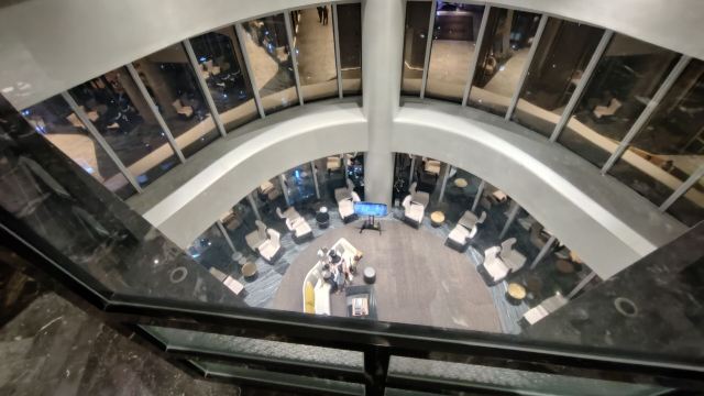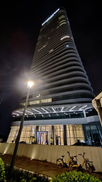 ligrant和在线旅游、住宿平台合作的这酒店,在佛山市南海,除桂城街道,就是全区最高档酒店。哪怕算上桂城街道,在佛山市区和南海、三水,包括近顺德乐从的佛山新城区域,也能在豪华酒店列前七名。前六名是佛山宾馆和保利的三间五星级酒店、佛山希尔顿酒店、马哥孛罗酒店。 希尔顿逸林在希尔顿品牌次于希尔顿酒店,但已属五星级酒店,比华美达酒店档次都高。考虑到没过双桥路的荔湾区也少豪华酒店,应不少广州居民来体验。 位置好,从桂城瀚蓝广场开车14分钟,去广州荔湾区,17分钟车程。所在南海大沥是南海区高产出和个人收入大镇,且路段属佛山禅城区和南海区、三水区去广州荔湾区、越秀区、天河区最近公路。地理位置属于佛山和广州边界。 周边工厂、楼盘小区多,各类型批发市场和肉菜市场也多,附近又有和华180、嘉洲广场、金铂天地、广佛新地、雅诺广场等商场和众多酒店、餐饮、学校,经常车多人多,交通拥挤,属闹区。 相反,酒店外形设计独特,新颖、科幻,设计考量细致,酒店高,电梯上升,梯顶有屏幕显现天外景象,有升外太空感觉。家具和装饰有超越所在区现代感、豪华感,内空间开阔,是本区地标。毕竟临近建筑如威尔斯商业广场,无香港威尔士亲王医院、玛丽医院、玛嘉烈医院等大型医院的规模和知名度。 餐厅在52楼,却着力打造具岭南风情古典型象,走廓地板是古代灰瓦片侧面外观,既具防滑倒功能,又与集团下属和华180商场中仿古代岭南街市的商铺街风格相符。但卫生间虽防滑地面,有水在地,仍滑。 但实话,纯近代外观商业街区设计自香港瑞安房地产集团在上海和佛山祖庙操作成功,在全国各地都有大量仿效。酒店和商场要取成功,需大量后续投入。商场前任公司,曾非常成功运营过佛山市桂城凯德广场,我也识,没成功,现集团需更多后续外围装修和打动人故事。 餐厅设计非常成功,整整一层餐桌围绕厨房和食品陈列架的内环型设计,空间利用很充分。且餐费实惠,190块钱可靠窗欣赏整个大沥镇景色。可惜晚8点用餐,只见大沥盐步部分街景。 食物种类多,除雪糕以外基本任吃。西洋巨汉,没吃几天,来了也吃不完。光西式点心有很多款。餐厅厨师服务很好,顾客可自选食品和海鲜,让现场加工,会让吃不惯冷熟海鲜或原味海鲜的顾客满意。用蒸笼来保温,又很贴心用多一大底碟装盛食物,防顾客烫伤,是很有经验。设计明显讨好家庭用餐,有儿童设施和很多儿童食品。