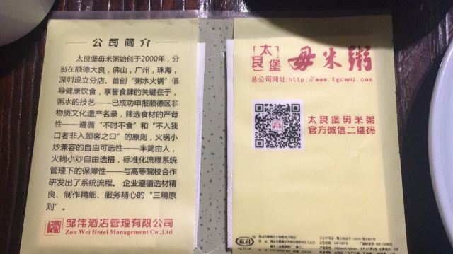 Tai gen bao wu mi zhou·Zhou Di Huo Guo(jin long lu zong dian)大良以前称太艮这里也是广东佛山地区的美食之地!毋米粥说是粥其实就是粥汤底的火锅!因为选材道地,米汤有将食材原汁原味的保留了!不需要蘸料就可以食用!非常的健康饮食!环境这啊也是超级的好!服务员将食材一一倒入锅中,火候刚刚好!非常赞的! 太艮堡毋米粥(锦龙路总店) 【口味】 【环境】 【服务】