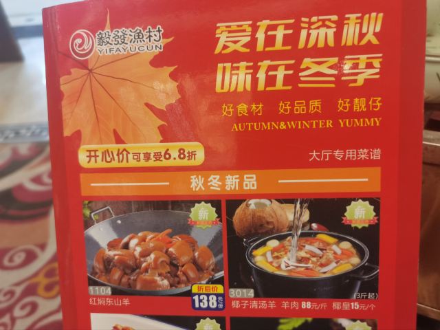 鲜虾烧卖皇,毅发虾饺皇,毅发发财鸡,清蒸桂花鱼,九节虾,鱼生,鲍鱼,酸甜排骨,粉丝扇贝,窝蛋牛肉粥,清蒸鸡,萝卜糕,清蒸大头虾,荔湾艇仔粥,椒盐鸭下巴,生炒菜心远,金瓜百花肠,番茄珍珠豪,艇仔粥,虾饺