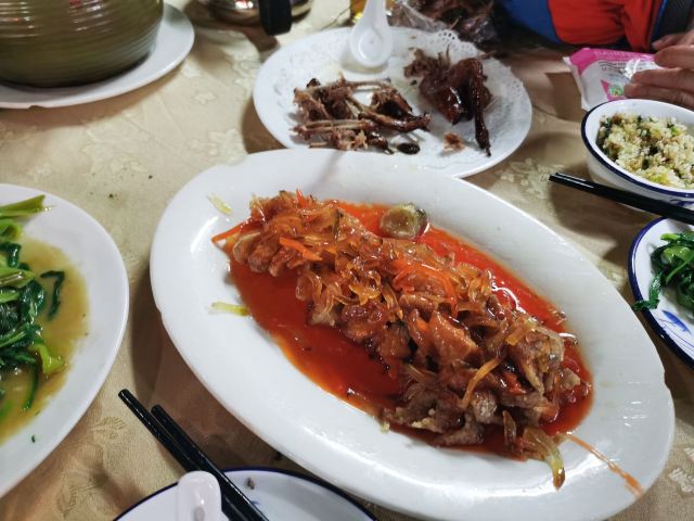这家餐厅已经有30多年的历史了,很多老佛山人都喜欢在这边吃东西。招牌菜是白切猪手,吃着很爽口。蜜汁茶花鸡的卖相和味道都很好,火候掌握的刚刚好,很入味也很开胃。老店还是值得一吃的。