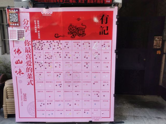 顺德双皮奶,烧鹅,白切猪手,三杯肠头,蜜汁茶花鸡,秘制茄瓜,顺德煎墨鱼饼,反沙菠萝,香酥竹腸,顺德煎焗鱼头,咸骨芥菜,虾酱炒通菜梗,有记豆腐,脆皮大肠,炒花甲,咸蛋黄焗南瓜,金针肥牛卷,碌鹅,炒通菜,蒜香竹腸,凤脆骨,有记餐厅沙姜猪肚,中例汤,咸蛋黄茶树菇,五柳炸蛋,椰子冰,特色捞粉,肠粉,鱼饼