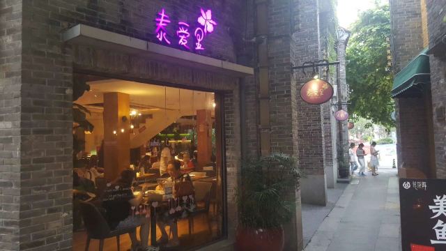 Tai AiLi FengQing Restaurant岭南天地人气旺[呲牙] 上周有老友来佛山,一起逛逛岭南天地,这里环境不错,有浓郁的岭南特色,人气旺旺哒!挺热闹 岭南天地基本保存了一个最完整古建筑物群,里面有不少著名保护文物,包括简氏别墅、嫁娶屋、孔庙、李众胜堂祖铺等22处文物建筑及街道,古典和现代结合,是一个聚旅游,餐饮,娱乐于一体的旅游胜地,吸引了不少中外游客