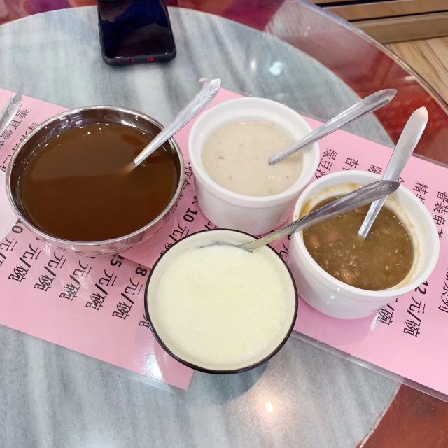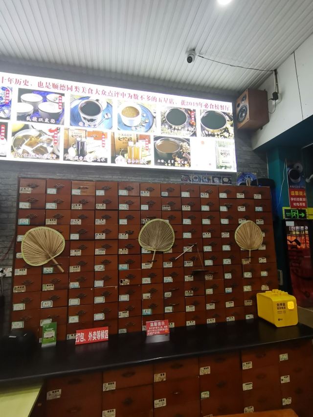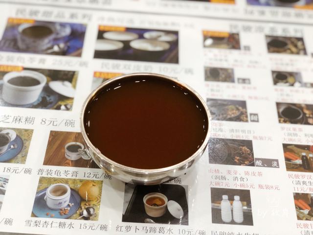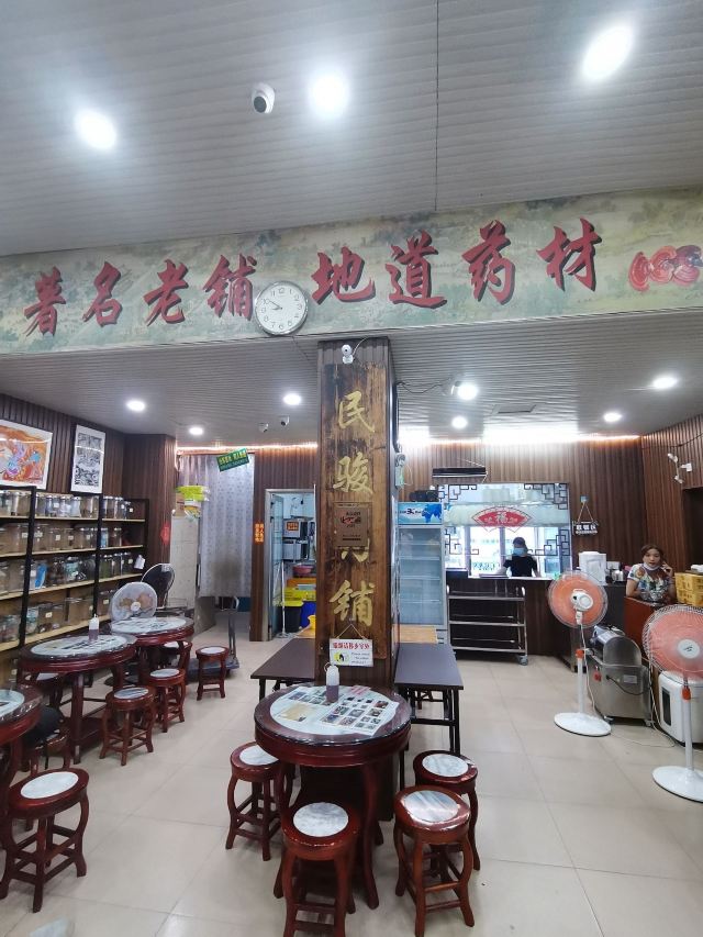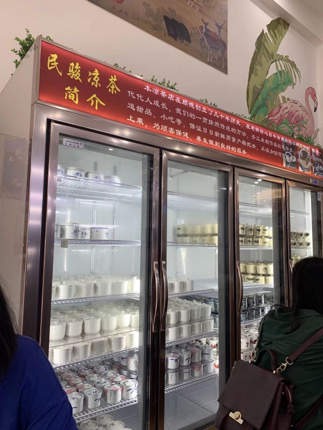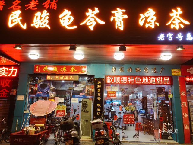 Minjunliangchapuqijiandian顺德一路吃吃喝喝,总也忘不了喝一碗凉茶。 凉茶在广东人的心目中就是日常所需,再寻常不过。所以深夜里也有人来店里点一碗龟苓膏或是凉茶吃。 这家店外表看起来就很有年代感,中药柜和药蒲扇看起来也很有年头了。 「石斛罗汉果金银花蒲公英栀子茶」 店里的招牌凉茶,听名字就知道很真材实料咯,功效是利咽降火去湿解毒。 「金装龟苓膏」 虽说木得恭和堂的醇厚,但算上价格就显得性价比很高了,一定要加多多的红糖糖浆。 「山楂麦芽陈皮茶」 完全是吃得有点多点来消食的。没凉茶那么苦,比甜茶醇厚。 「罗汉果雪梨杏仁葛水」 这个应该归在甜茶里的,甜丝丝的,当作饮料在喝的。