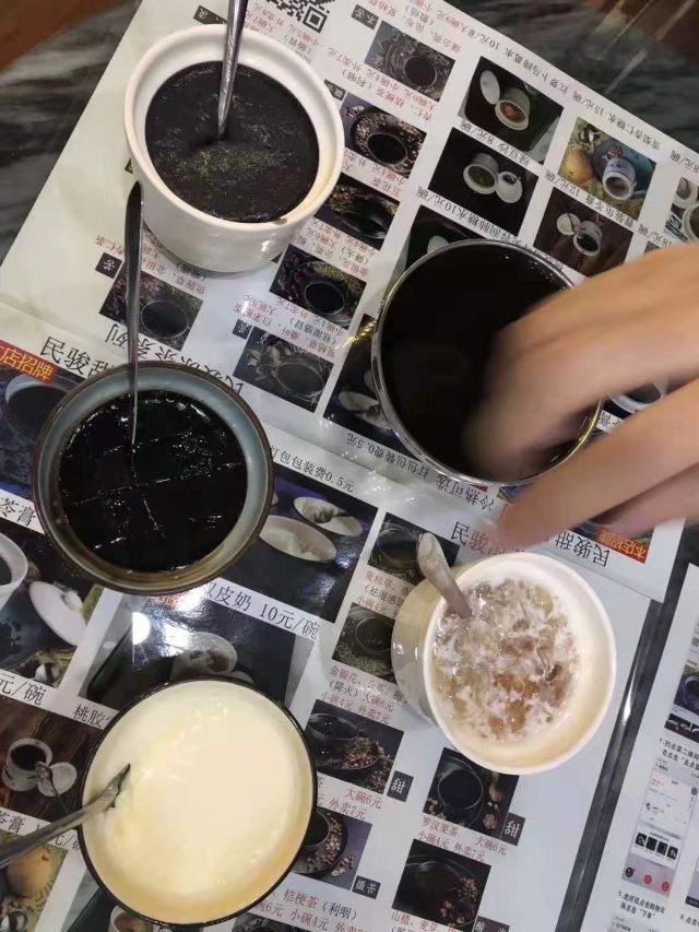 民骏双皮奶,绿豆沙,黑芝麻糊,金装龟苓膏,凉茶,桃胶雪耳美容润肺糖水,雪梨杏仁贝母冰糖,双皮奶
