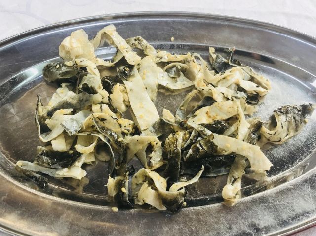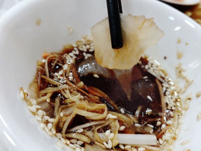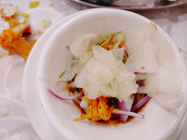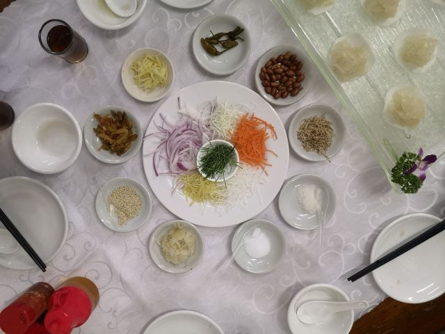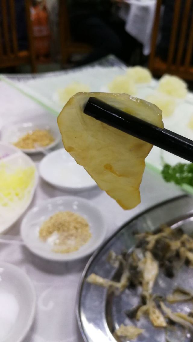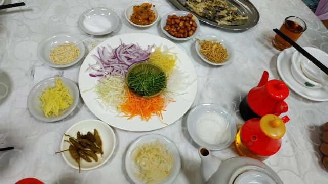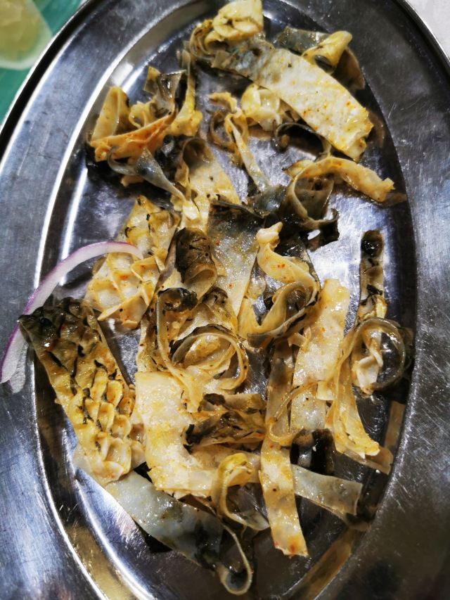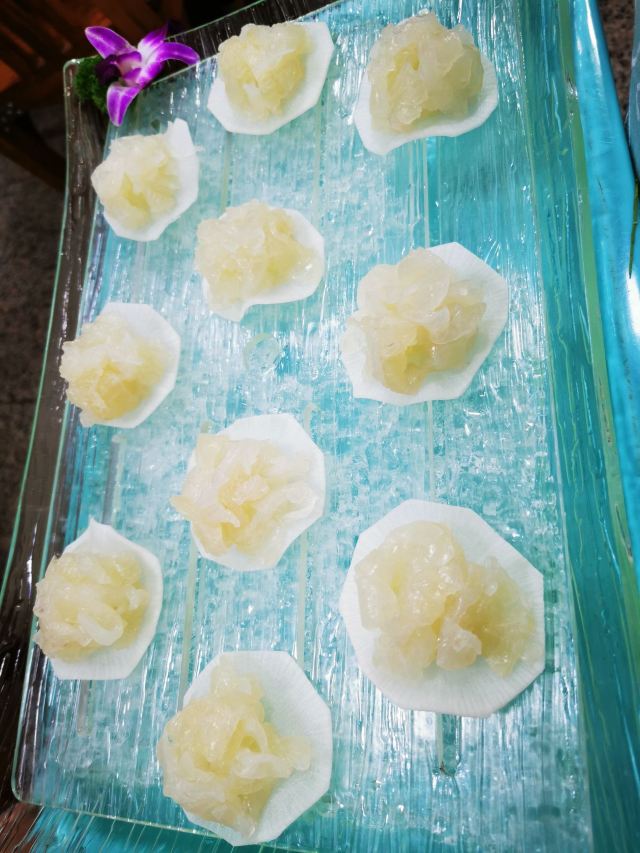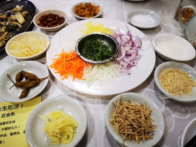 位于居民区的一家毫不起眼的风味小店,连店招牌都没有,这里是专门吃鱼生的,只有两种套餐可选,套餐包含一鱼四吃:最好的位置做成菊花鱼生,剩下的做成椒盐鱼骨、鱼皮凉拌、鱼头炖粥。