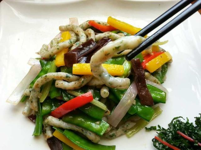 餐厅以绿色养生为主,环境清幽古朴。无论是装饰还是木制桌椅,都让人倍感温馨,很有农家的亲切感。餐厅主打桑叶菜式,配以纯正的粤式烹饪方法,健康清淡,很有特色。