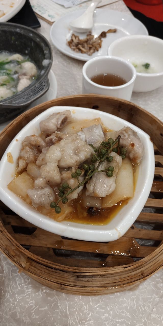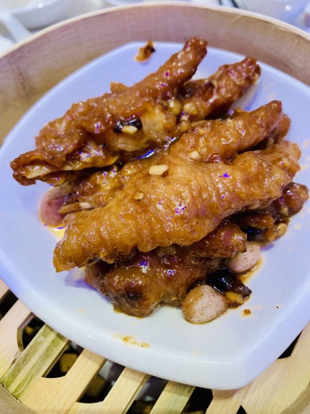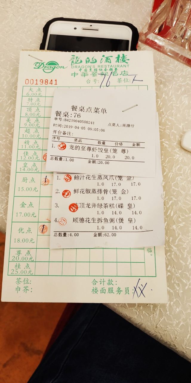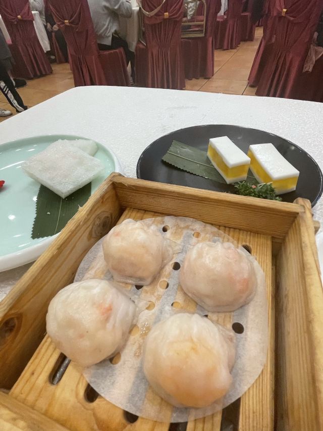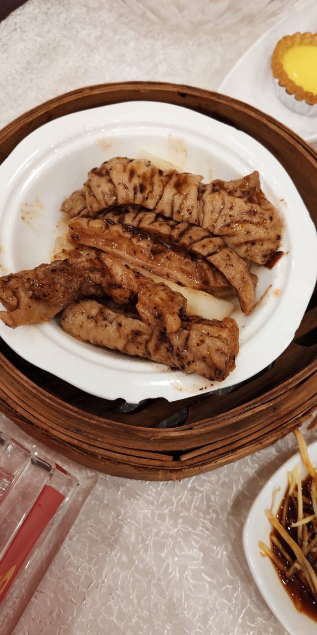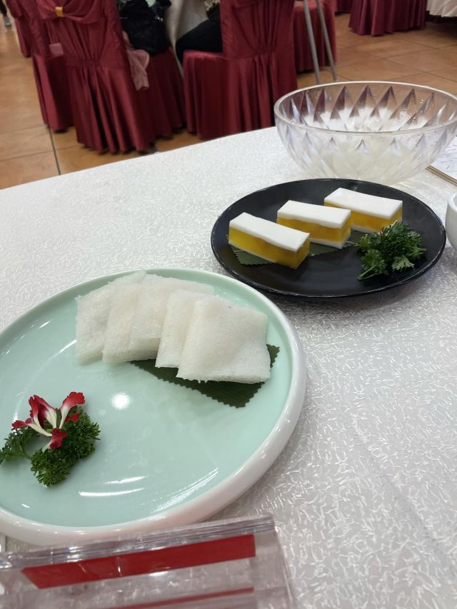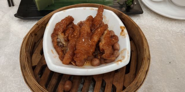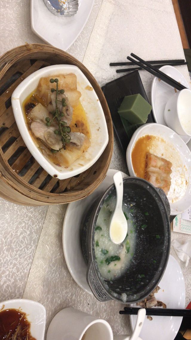 Yolanda_zy来顺德的第一餐,见识了地方早茶的壮观。没有预约,大概9点不到到的,已经是大堂少有的位可选。这里先点茶后服务员给自助卡单,拿着卡自选茶点,轻点敲章后,拿到自己桌享用。全自助形式,可多次拿取,每次会有些不同的点心,根据后厨的出品情况决定。正巧阅兵式,大家早早拿好茶点,坐下慢慢吃慢慢看。给我总统感觉,品种丰富,味道还是普通,没有想像中美味。陈家粉也就是淡淡的,因为排骨的香油渗入,才有了一点味道。虾饺皇都是一直蒸着,所以吃口不是特别好,有种煮过头感觉,还是喜欢现点现蒸的那种。炸鲜奶是当地特色,可是特别甜,油腻,不适合多吃,配上茶可以吃一两块。猪血倒是出乎意料的嫩,好吃。一餐最让我记住的还是姜撞奶,甜度适中,滑滑嫩嫩的奶香十足。