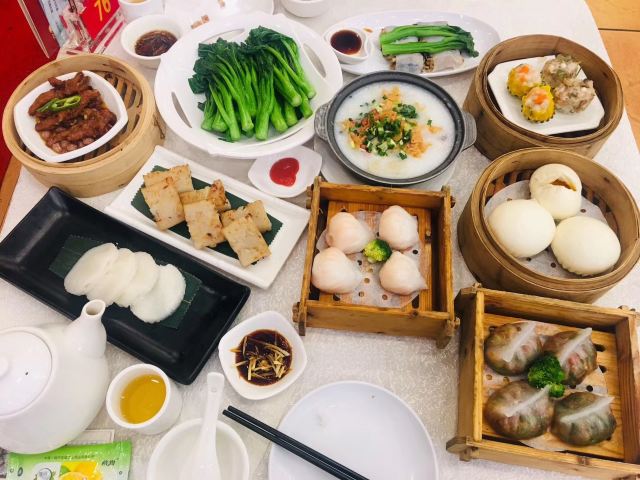 虾饺皇,脆皮白糖伦教糕,蜜汁凤爪,金浆玉液流沙包,生滚鲜鲩鱼片粥,绿茶糕,沙爹柱侯金钱肚,百香果奶冻,肠粉,早茶,鸭脚扎,大良炒牛奶,点心,金蒜排骨陈村粉,蟹黄鲜虾烧卖,双皮奶,炸牛奶,云吞面,脆皮伦教糕,招牌黑金包,鲜滚粥,榴莲酥,古法排骨蒸肠粉,虾饺,伦教糕,陈村粉