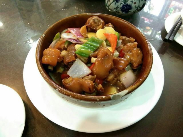 旅游度假因为附近找不到啥实惠的团购餐厅,只能来点餐了。钵仔子姜猪手43元,紫苏炒豆角茄子30元,茶4饭3,结账83元当然不如团购实惠,但味道好份量足,又有点撑了。