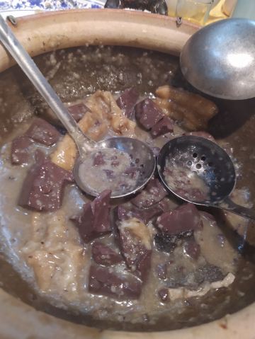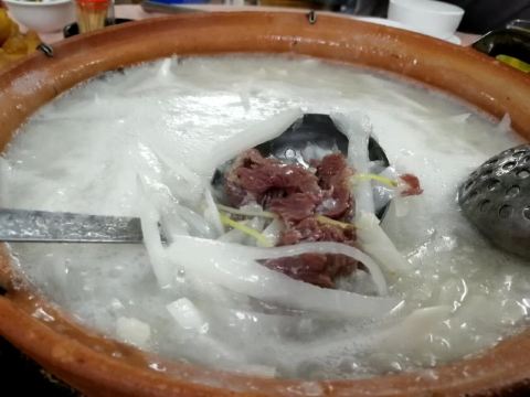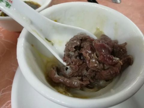 去佛山高明游玩,当地朋友带去吃当地的特色宵夜~牛肉粥。这家店的牛肉都是当天现宰现卖,因为要晚上9点半才有得吃。一到晚上这里就很多食客,店铺装修很一般,有两层。首先上来一锅白粥水底,然后自己再单点牛肉食材放入粥内滚。我们选了白萝卜丝放入粥内,牛肉点了牛花焦,牛花鞭,牛颈肉,牛柏叶。牛肉和牛柏叶都是滚几下就吃,否则耐左就老啦。吃完牛肉之后最后吃粥,很清甜。