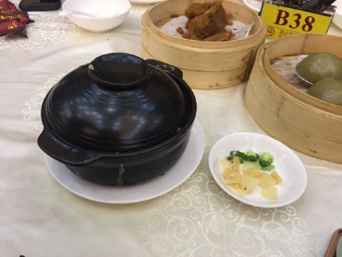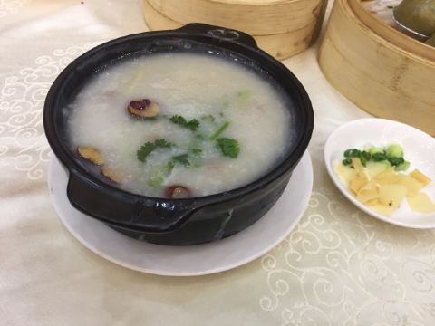 ♫|地点| *位于奇腾路雍憬明珠二楼,临近就是大酒店,提供住宿。虽然地理环境是在镇的边缘地带,但是一点都不影响它的火爆。 *早上八点多到店,位置充裕。到了快九点多就要等位叫号了。 *在今时今日,在九江需要叫号的店还真的挺少的。(九江人基本上哪儿有位哪儿吃,没那么执着哈哈。)可见这里虽然茶点的价格在九江数一数二,但是大家还是很捧场。 ♫|环境| *高大上,二楼才是正式的就餐区。因为正值春节,所以一楼摆放了一颗大桃花。 二楼大厅超级无敌大,大约能摆100桌酒席。正前方是液晶大电视。 ♫|服务| *服务说不上一流,但是也蛮不错的,就是服务员人手少了点,招手也不见得有服务员来。 「雍憬虾饺皇」 *¥19,出品不错,啖啖虾肉。赞。 「窝蛋免治牛肉粥」 *¥16,价格正常,分量大,性价比高。 「古法马拉糕」 *大份 甜腻 不推荐。