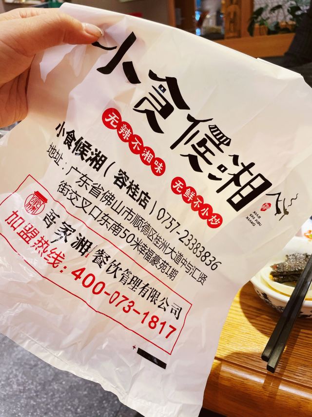 小食候湘,一家湘菜馆。 活动:买的联联优惠4人餐。实际2人堂食。 使用时间:联联上显示当天约,可当天电话预约店家。 停车:店门一排是免费停车,往外延伸一排停车位是需要收费3元/小时。 菜品:上菜速度快,下班突然来袭,好饿好饿呀! 位置:可自由选座 纸巾:1盒 米饭:不限量 自助小吃,和凉菜(海带) 服务:还是很贴心的,为客人开灯,及时收碗。不想打扰他们,我们也只想安安静静吃饭。 可能也是新店的缘故吧,老板会来问问菜品怎么样。期待你们做的更好,虽然是连锁店希望你们有自己的特色。 上菜排序:酸辣鸡杂:刚一上菜就猛吃了好几口,立马让服务员帮忙打米饭,喜欢酸萝卜的清爽家鸡杂的鲜味融和,很下饭,爽口。 辣椒炒肉:肥瘦相间的肉切成博片,香料上色,加灵魂豆屎,真是香,辣椒用湖南辣椒。在打包的时候突然看到辣椒没有切的茎,不经想了下是不是没洗或者随意过下水,我切我切我切切切的架势。 这两个菜真是下饭神器,喜欢吃辣的可以试试。我点的是正常辣,辣度可自行选择有正常和微辣。 老长沙臭豆腐,初尝觉得辣味,酸味,臭味,酱汁味布满口腔真是美味,再尝真是觉得有点闲呀。想必下次是不会有想法吃。没有小颗小颗的榨菜,也没有香菜,还有腐乳。这最后可是臭豆腐的精髓呀。 炒时蔬:白菜加上油渣,味道还是清淡的,不是用猪油炒的,所以没有那么香。 酸菜鱼:这个酸菜鱼上来之时,汤汁已经是温热的,而不是热气腾腾的感觉,酸菜和鱼之间的契合感觉是强加上去的,吃了几口不想在尝试。 最后,攸县香干是酒精炉的结果上来的是碗,这个尝了两块,全部打包了,毕竟是真的吃不完。