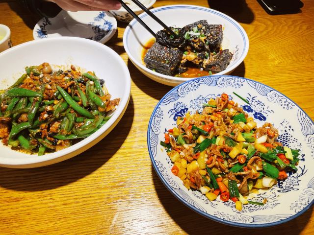青椒老鸭带杂,手抓羊排,吾家有机鱼头,辣椒炒肉,干锅肥肠,攸县香干,酸萝卜牛肚丝,皮蛋煮苋菜,酱汁皮蛋,有机花菜