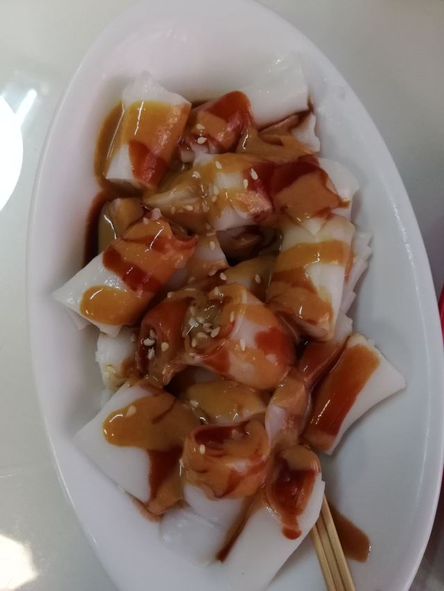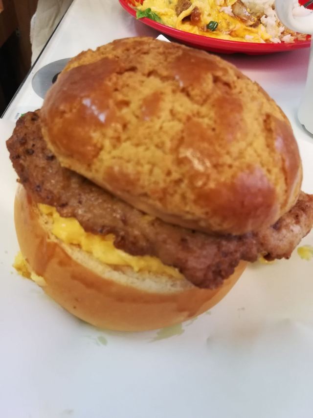 猪扒滑蛋饭,猪扒唔系成块上,切条,应该叫肉条蛋饭,炒蛋应该2只,无咩特别咯。 捞酱猪肠粉,花生酱甜酱都好香,不过要趁热食,猪肠粉冻左就无甘好食。 柠蜜,要左少糖热饮,蜜糖味就少d。 猪扒蛋菠萝包,菠萝包系呢家店招牌,猪扒第一口感系辣,加左黑椒腌制,有dM记感觉,猪扒无咩汁,不过下面炒蛋水分充足,菠萝包本身热,呢家既包上面个层酥皮做得比较厚——所以酥皮口感系脆既。
