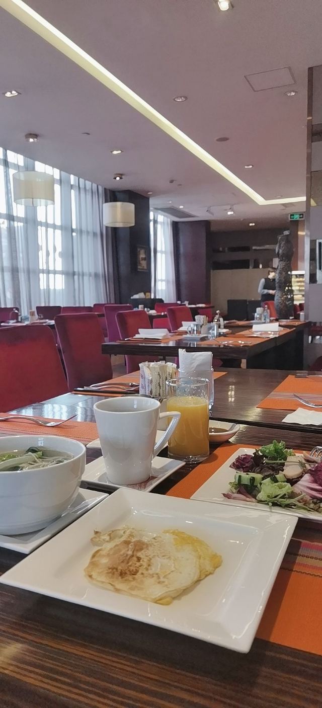 HengAn RuiShi Restaurant Café入住佛山恒安瑞士大酒店,早晨自然是在西餐厅用早餐了。 环境很好,就在五十楼,可以俯瞰整个佛山市区,关键有一圈室外阳台,很赞。 吃的东西不多,选择余地不大,服务是极好的。