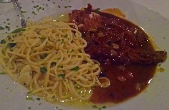 鱿鱼披萨。 炸鱿鱼作为一个美味的披萨配料上,是在一个木制烤箱做的。 出来的完美。 其他的食物也是相当大的! 意大利面的份量也很大,我们吃的超级饱