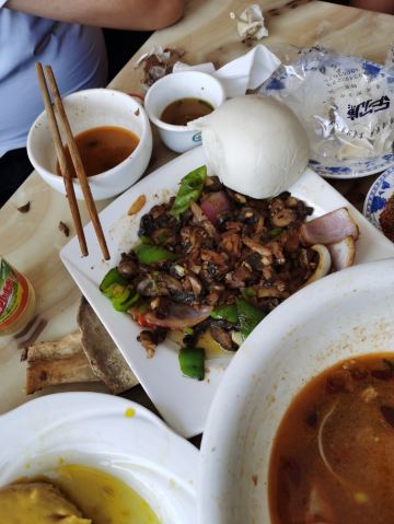 右玉的羊肉绝对是名声在外,无论是涮锅子还是炒菜、做馅都是非常不错的,肉质细嫩,香气扑鼻,我们五个人要了五个菜,不到200