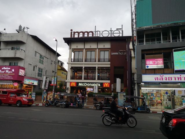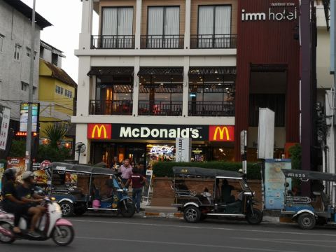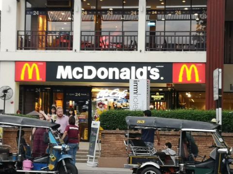 这家麦当劳就在塔佩门的正对面,这里真的是很显眼的一个地方,好像就是在一个酒店楼的楼下吧,反正算是挺方便的,里面的位置也算是挺多,没想到还是挺多人的,在这边吃东西还是蛮方便,还有中文菜单,连这张包纸都有中文的。 物价跟国内的差不多。