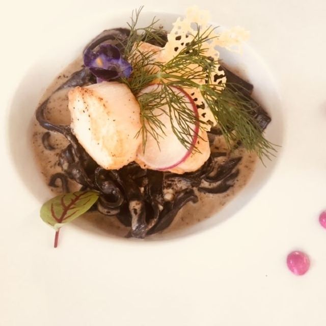 spaghetti tiger prawn tom,泰茶提拉米苏,红酒牛排,司康,墨鱼面,奶油意面