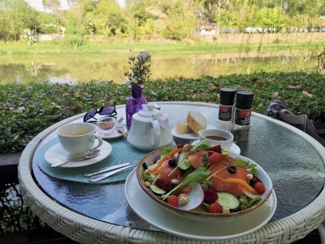 YoYo_4D5J3P8HWorld class meal by the river Ping We stayed at the Ping Nakara Hotel, just about 200m from the restaurant. We decided to go over for a couple snacks and to check out the ambiance. We ended up staying for a full course meal including dessert! The food was refreshingly unique and the restaurant is located on a serine portion of the ping river, shaded by a massive beautiful tree. The location and food combined provided the perfect evening spot for our first day in Chiang Mai.