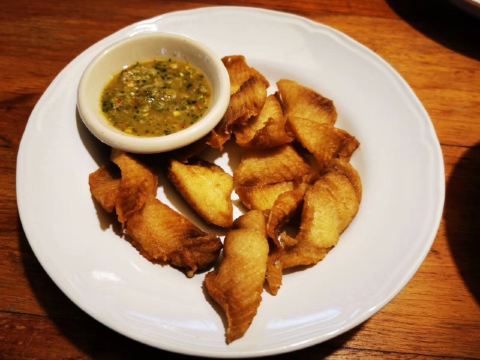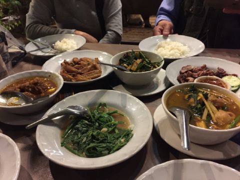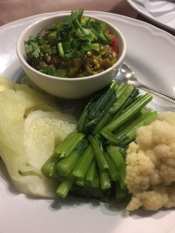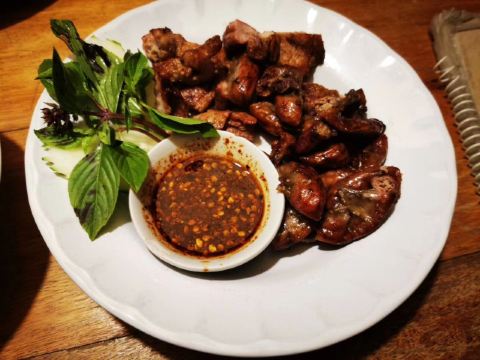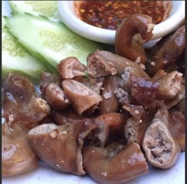 虽然也是大排档的形式,这家走的是高端路线,看到很多小情侣穿的漂漂亮亮的来约会。排队也是需要排15分钟到30分钟的。 不知道是不是泰国人饭量很小,总觉得点的不够多,还要加菜。他们家也有糯米饭,香的要命,可以直接干两份。配上这个大肠沾辣酱,简直不要太下饭
