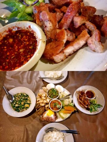烤猪颈肉,冬阴功汤,泰北烤鱼,佛手叶炒蛋,烤罗非鱼,炸鸡翅,香蕉花炒鸡蛋,炒龙须菜,炭烤猪颈肉,猪脚饭,炸猪皮,辣猪肉沙拉,北部拼盘