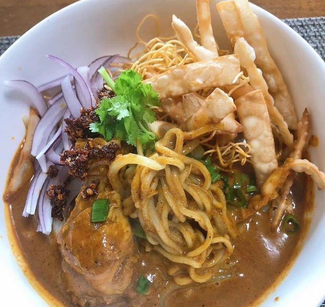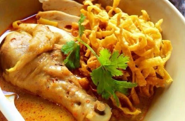 chanchao khaosoy这碗面源自泰国北部清迈,大厨每天以自家制的新鲜咖喱酱及鲜椰浆调制汤底,味道香浓,搭配从清迈直送的蛋面,面条口感烟韧,而且尽吸咖喱汁精华,再加上炸得香脆的金面、芥菜、青葱、青柠,令味道更富层次。咖喱系列中,“特色姜黄咖喱虎虾配槟榔叶”亦相当出色,以新鲜的虎虾搭配酸柑汁、椰奶、泰式香料,再加上一点姜黄,椰香扑鼻,微辣的咖喱汁提升了虾肉的鲜味,酸柑汁则有助平衡咖喱的腻滞感。品尝咖喱系列菜式时,建议大家伴以“鲜制泰式飞饼”同享,即叫即制的飞饼外脆内软,并洋溢着牛油香气,再蘸上香浓的咖喱汁,味道更佳。
