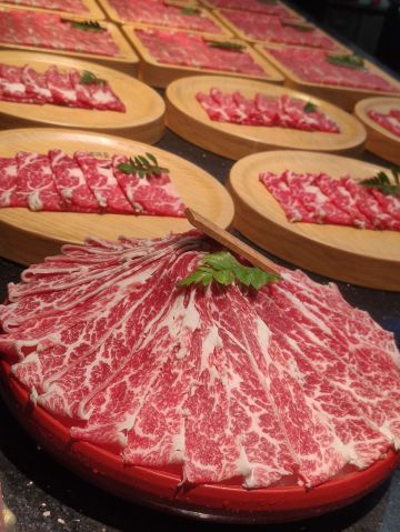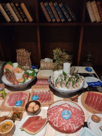 Yue Ding Hui Seafood Zi Zao悦鼎会海鲜姿造,和牛造起来,M8-9-10你想怎么燥就怎么燥! 老牌子悦鼎会一直吃的是海鲜,近期看到推出和牛系列对于爱吃肉的必须来打卡!一进门感觉还是比较高雅的西餐厅风格,整个逼格体现出来,服务也跟到位。 选择澳洲和牛套餐,要吃肯定吃种类最多的才对得起美食,特色头盘菜八选一,选择最实在的焗大龙虾,很大一只肉质紧实新鲜,和牛肉就丰富了,从M8吃到M10,有牛后胸、牛小排、牛舌、上脑、西冷,醉醉醉喜欢的当然是M10雪花肥牛,颜值当当,每片肉的花纹都像是艺术品,看着就非常有食欲,口感肥瘦相间,牛油的香味入口即化,肉质细嫩,裹上无菌蛋液据说才是最赞的操作!好在是自助,忍不住多吃了几盘! 除了牛肉当然还有刺身拼盘也是硬菜,三文鱼、北极贝、甜虾、金枪鱼、刺贝,生蚝、香螺,就是一个字“鲜”!!! 自选区域有饮品,甜品,其他海鲜丸类蔬菜,还是相当丰富! 地址位于东方明珠广场,莲花路口地铁口,三号一出来即可看到!爱吃肉肉的千万别错过!