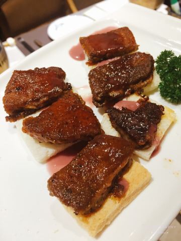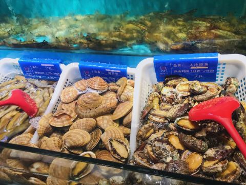 哆啦Eanny位于莲花路口地铁站出口,走进来像是来到海底世界,五彩斑斓的灯光,上二楼可以看到各种海鲜姿造,冰雕雪雕。 有分大厅和包厢两种,包厢超大的适合私人宴会活动。 海产品丰富,鳄鱼,海胆,海星,澳洲龙虾大斑节虾,生蚝扇贝,东星斑,帝皇蟹,象牙棒,皮皮虾等几百种海鲜。 刺身 三文鱼,北极贝,吃起来都很鲜美可口。 有很多外面比较少吃到的海鲜这里都有,让你大口吃海鲜,而且可以自己捞新鲜的海鲜。 一人一个小火锅,可以烫各种海鲜。 第一次吃鳄鱼,吃起来口感Q弹,有点像猪脚,胶原蛋白满满。 热菜 推荐牛仔骨,羊排,巴西烤肉,芝士蟹宝, 鹅肝,热热现煎的鹅肝,入口即化。 烤榴莲,对于榴莲控来说,烤榴莲真的不错吃,超香的。 佛跳墙 一人一盅,里面有鲍鱼海参等,喝起来汤汁浓稠。