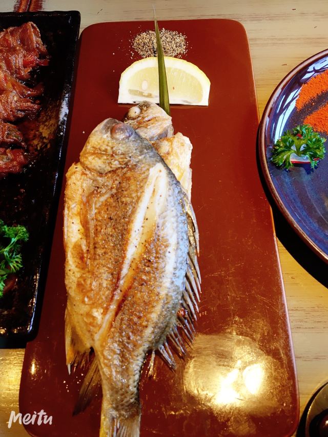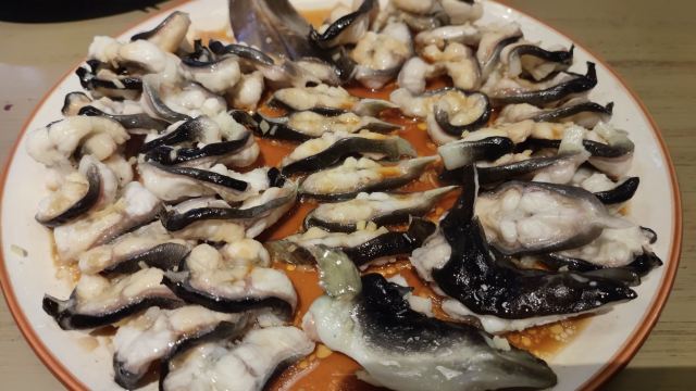 young-liu上屿水产算得上是鼓浪屿上逼格最高的一家海鲜店,地址在马约翰广场旁,一栋三层楼很明显,属于颜值口味皆赞的那种。逛遍整个鼓浪屿,遍布各式海鲜排档、酒楼、饭馆,上屿水产的给人眼前一亮的感觉,装修文艺复古,与岛上的历史人文风韵很搭,是年轻人打卡的好去处。 店内主打鲜活海鲜,包括世界三大蟹:阿拉斯加帝王蟹、俄罗斯松叶蟹、北海道红毛蟹,以及澳洲青龙。 秘制姜母鸭,味道还可以,建议姜母的味道可以再浓郁一些。 香煎金昌鱼,酥香微咸,鱼肉鲜嫩。 小象拔蚌拌秋葵,价格在鼓浪屿上算是比较厚道,象拔蚌是绰过水的,所以不爱生食的也不用担心。搭配秘制酱料很不错。 韩式脆红螺加入了泡菜风味,略带辣的口感,新颖独特。 川香乌鳗鱼鳗鱼,切片用水煮活鱼的做法,是第一次吃,值得推荐。