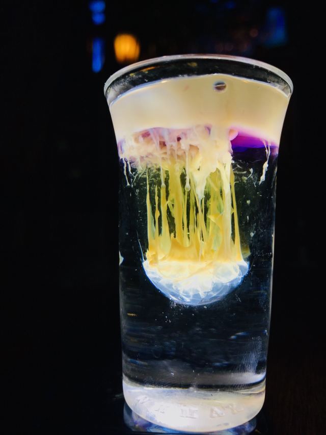 怪力_乱神New way位于中山路。走进大门就好像进入一个奇妙的世界,眼前密布的粉色羽毛,以及脚下每走一步都会弹出一个音符的键盘阶梯。酒吧里是星空的设计,走进去仿佛置身银河,看着天上的流星,也太浪漫了吧!他们家的招牌鸡尾酒一套有12杯,每一杯都有故事,水母和脑溢血这种的,都只能算是入门级别的。豆腐渣的口感就像名字一般、B52的热情如火不能错过,还有钟乳石、暧昧和肠子...原创的MY WAY像极了人生。酒体是苦和辣的味道,喝一口,在嘴里旋转,待口腔充满辣劲儿的时候,咬一口掺着粗糖的柠檬片。这人生的酸甜苦辣,全部都在这一杯里了。