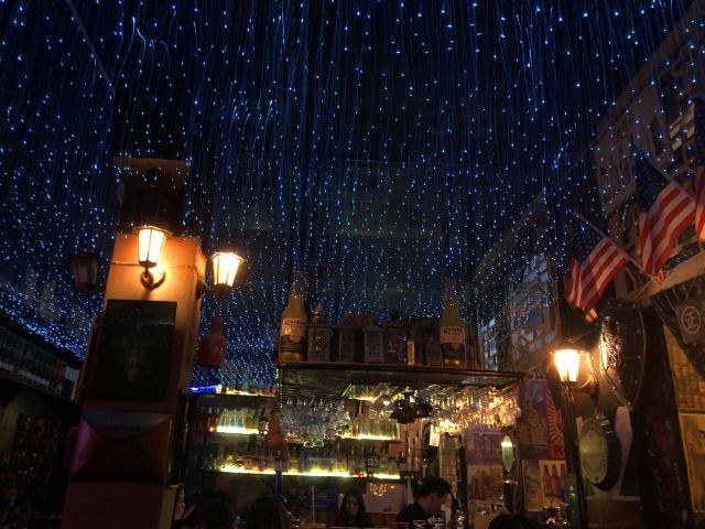 NEW WAYNew way位于中山路。走进大门就好像进入一个奇妙的世界,眼前密布的粉色羽毛,以及脚下每走一步都会弹出一个音符的键盘阶梯。酒吧里是星空的设计,走进去仿佛置身银河,看着天上的流星,也太浪漫了吧!他们家的招牌鸡尾酒一套有12杯,每一杯都有故事,水母和脑溢血这种的,都只能算是入门级别的。豆腐渣的口感就像名字一般、B52的热情如火不能错过,还有钟乳石、暧昧和肠子...原创的MY WAY像极了人生。酒体是苦和辣的味道,喝一口,在嘴里旋转,待口腔充满辣劲儿的时候,咬一口掺着粗糖的柠檬片。这人生的酸甜苦辣,全部都在这一杯里了。