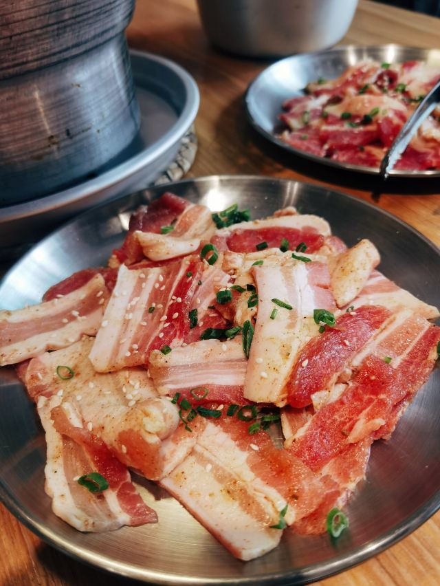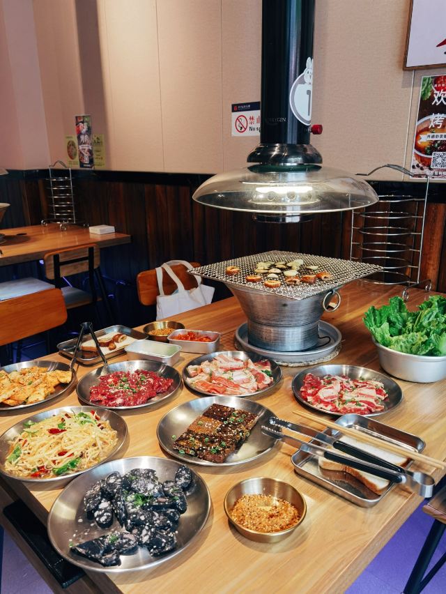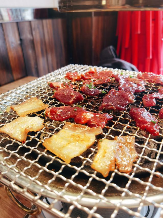 如果喜欢还没有勇气说出来,那就一起吃顿烤肉吧! 这家一听名字就很有爱的烤肉店,好适合情侣啊。 店面不大但是小小的挺温馨的,有点日式设计风格。 主打炭火烤肉,需要自己烤肉。 秘制鲜牛肉 鲜牛肉吃起来口感鲜嫩多汁,大片的牛肉可以体验大口吃肉的爽快。 秘制五花肉 五花肉是烤肉必备,肥而不腻的口感,包生菜吃起来更美味。 烤肉的蘸酱只有干碟,蒜片,青椒。 小蒜大肠 喜欢大肠的一定不要错过,烤大肠吃起来太美味了。 每个人都会送一块土司吸油,这个很贴心。 ~~~~~~~ Tips : 【🍽哆啦爱美食】 【店名】欢喜泥炉·烤肉(万达广场店) 📍详细地址:仙岳路4672-148(金街外围、六号门大排档斜对面) 🚗交通攻略:自驾停车很方便,公交到万达广场公交站 🕙营业时间:11:00~14:00 17:00~22:30 🍽推荐菜品:五花肉 嫩牛肉 💰人均消费:78+