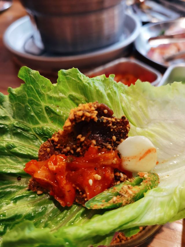 墨鱼肠,泡菜五花肉,秘制五花肉,雪花牛肉粒,生菜,吸油面包,秘制雪花牛肉,黑椒牛肉,黑椒鸡蛋,欢喜大虾,秘制鲜牛肉