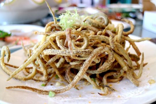 在这个商场里面这家餐厅应该是最大的了。 这家大排档真不能叫大排档了,整整一个顶层都 是他家的,有各种包厢,建筑本身是长条形的,所以包厢分布在两边,而中间是点菜区。 环境: 装修简洁大方,比想象中的排挡要好很多,来的早还能找到大厅的靠窗位,就是天色己暗,只能听听海浪声,看不到海了。包厢也不少,但因为没定位就到大堂坐了。 服务: 服务很热情,因为在商场顶楼,很多电梯都可以到,所以也没有从正门进,看到一个服务员问了 下有没有位子,立即带领我去到大厅帮忙安排,很热情,送菜上菜速度也很快。 菜品 豪丽姜母鸭 福建的特色菜了,香酥可口,姜母鸭很入味,带一点点中药的味道,反而激发了鸭肉的甘甜,去除了鸭肉的腥味。 粉丝蒸波斯龙 爆炒章鱼 盐水怆巴浪鱼 海鲜粥 海鲜类的都很新鲜,烧的正正好好,保留海鲜鲜美的同时又保持了肉质的弹性,全部光盘。