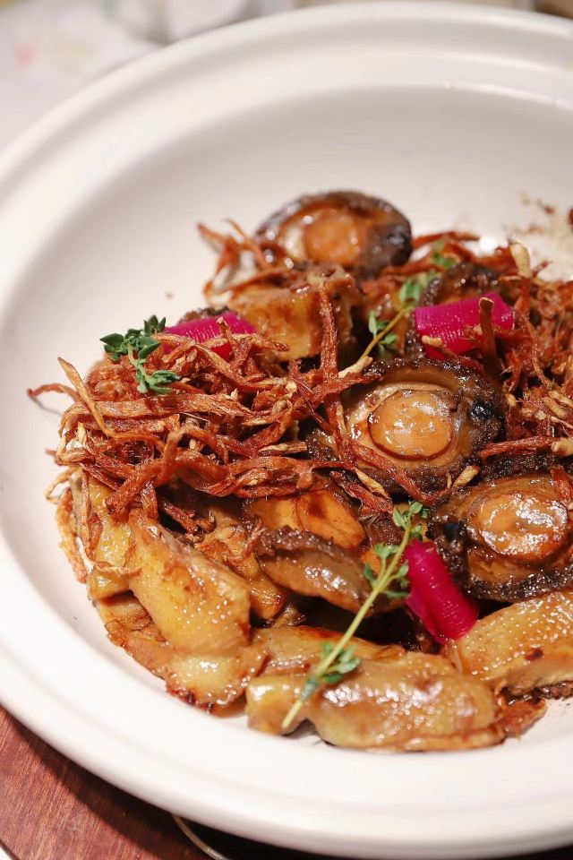 🔸经常有朋友问我,家庭聚餐或者宴请朋友,有什么环境好、性价比高又上的了台面的餐厅,我都会给他们推荐私厦里。 🔸私厦里的菜品一直保持很高的水准,光是从凉菜就可见一斑:油醋汁沙拉时蔬搭配用心,营养丰富;咖喱鲂鱼冻口感特别,鲜味十足;葱茸绿笋拌河田鸡爽口好吃;醉香汁浸老蛏表现不凡,让人欲罢不能。 🔸椰青竹笙炖三宝是来店必点的招牌菜之一,用椰青直接入汤,加入鸡肉、排骨等慢炖,汤头鲜甜美味,忍不住多喝了好几碗。 🔸私厦焖鲍姜母鸭也是人气菜品,值得推荐。闽南人最爱的姜母鸭,用鲍鱼去焖煮,味道更鲜,一开盖香味就扑鼻而来,就连里面的姜母丝也能嚼出美味来。 🔸香糟猪手烧螺片是最让我印象深刻的一道菜品,加入红红的酒糟,猪肉软烂入味,螺片则依旧爽脆,二者的口感一软一脆,对比强烈。 🔸东星斑加入老酱瓜清蒸,还是头一次吃到。鲜美的鱼肉被酱瓜侵入,味蕾更添了几分跳动。 🔸手剥野生花蟹肉烩津白可以算是一道手工菜,别看它简单,做起来并不简单,光是从手剥野生花蟹肉就可以看出,这是一道倾注了巧思和心血的菜品。 🔸在私厦里,有这么多的大菜值得推荐,但一定请记得要留点肚子给松露炒饭,绝对值得一试,很多人就是因为这道炒饭成为回头客。